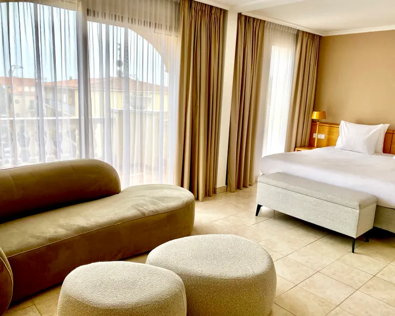Ein geräumiges Zimmer mit einem Doppelbett, Schreibtisch, Kaffee- und Teekocher, Satelliten-TV, Safe (kostenlos) und Kühlschrank. Außerdem gibt es einen Balkon mit Sitzmöglichkeiten.
