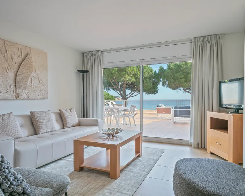 Terrasse privée avec vue sur mer et climatisation : les équipements de luxe de l'appartement Girona