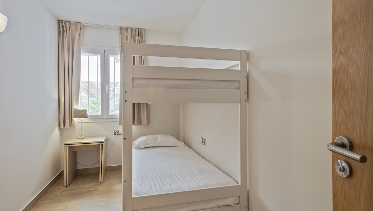 Appartement Girona is geschikt voor maximaal 6 personen. De slaapplaatsen zijn opgedeeld in drie slaapkamers; één tweepersoonskamer met kingsize bed en complete badkamer, één tweepersoonskamer met kingsize bed en één tweepersoonskamer met stapelbed. Ideaal voor een vakantie met het hele gezin of voor een uitje met vrienden of familie!