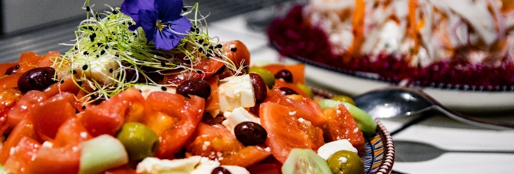 Dan is het wel zo gemakkelijk dat we het diner van het buffet serveren. Er is een keuze uit salades, koude en warme voor- en hoofdgerechten.
