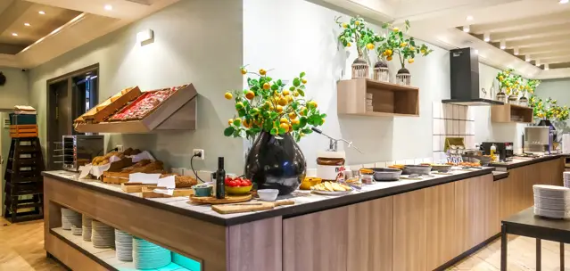 Tanto si prefieres un desayuno ligero y saludable como un desayuno completo para empezar el día con energía, nuestro buffet ofrece opciones para todos. Encontrarás pan recién horneado, fruta fresca, yogur y platos calientes. También hay opciones pensadas para los niños, para que toda la familia disfrute de un buen comienzo del día.